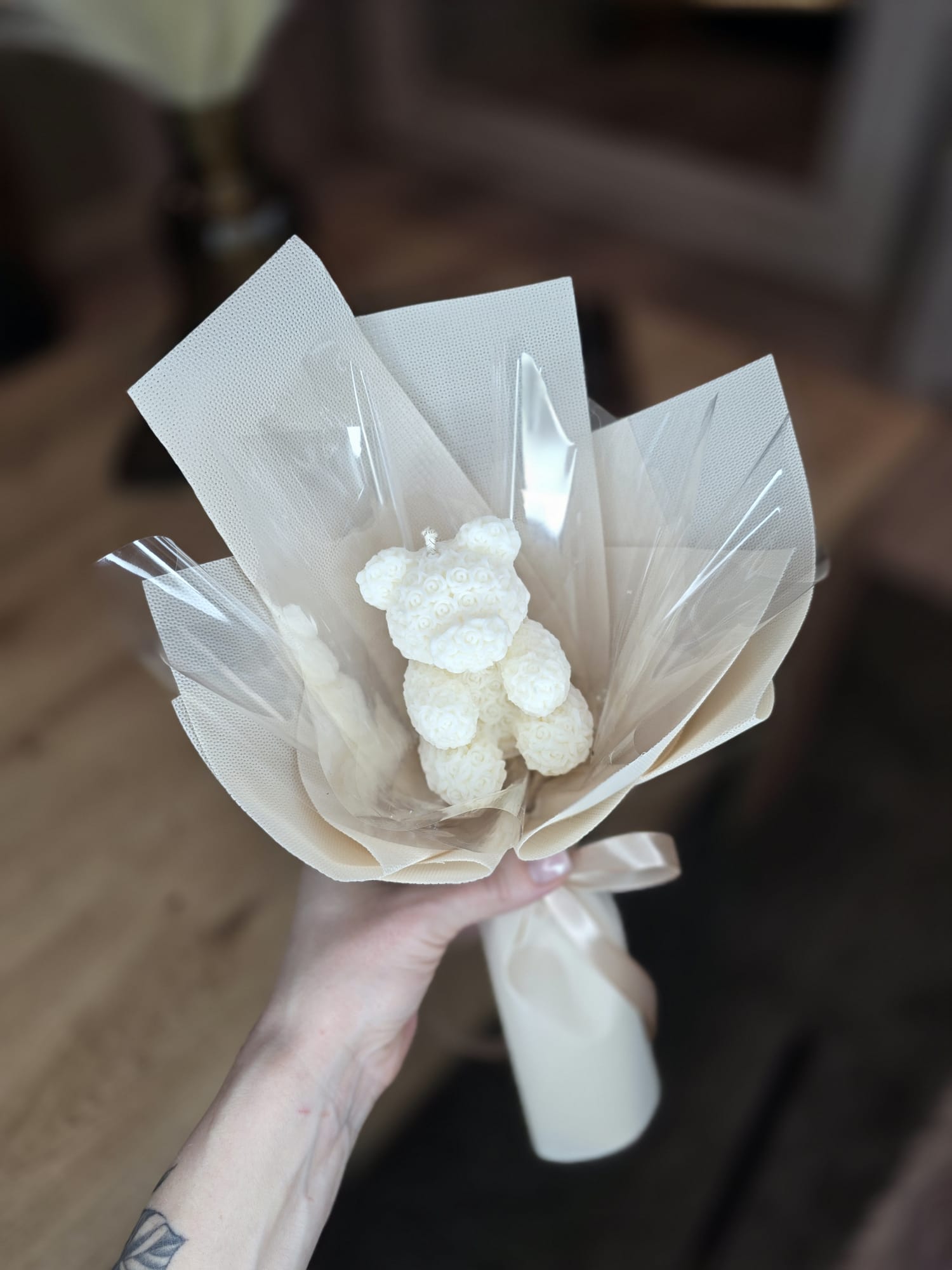 Šī burvīgā lācīša formas svece ir radīta kā simboliska, sirsnīga dāvana īpašiem brīžiem. Izgatavota no dabīga sojas vaska, tā ir draudzīga videi un piemērota arī jutīgiem cilvēkiem, jo nesatur aromatizētājus.
