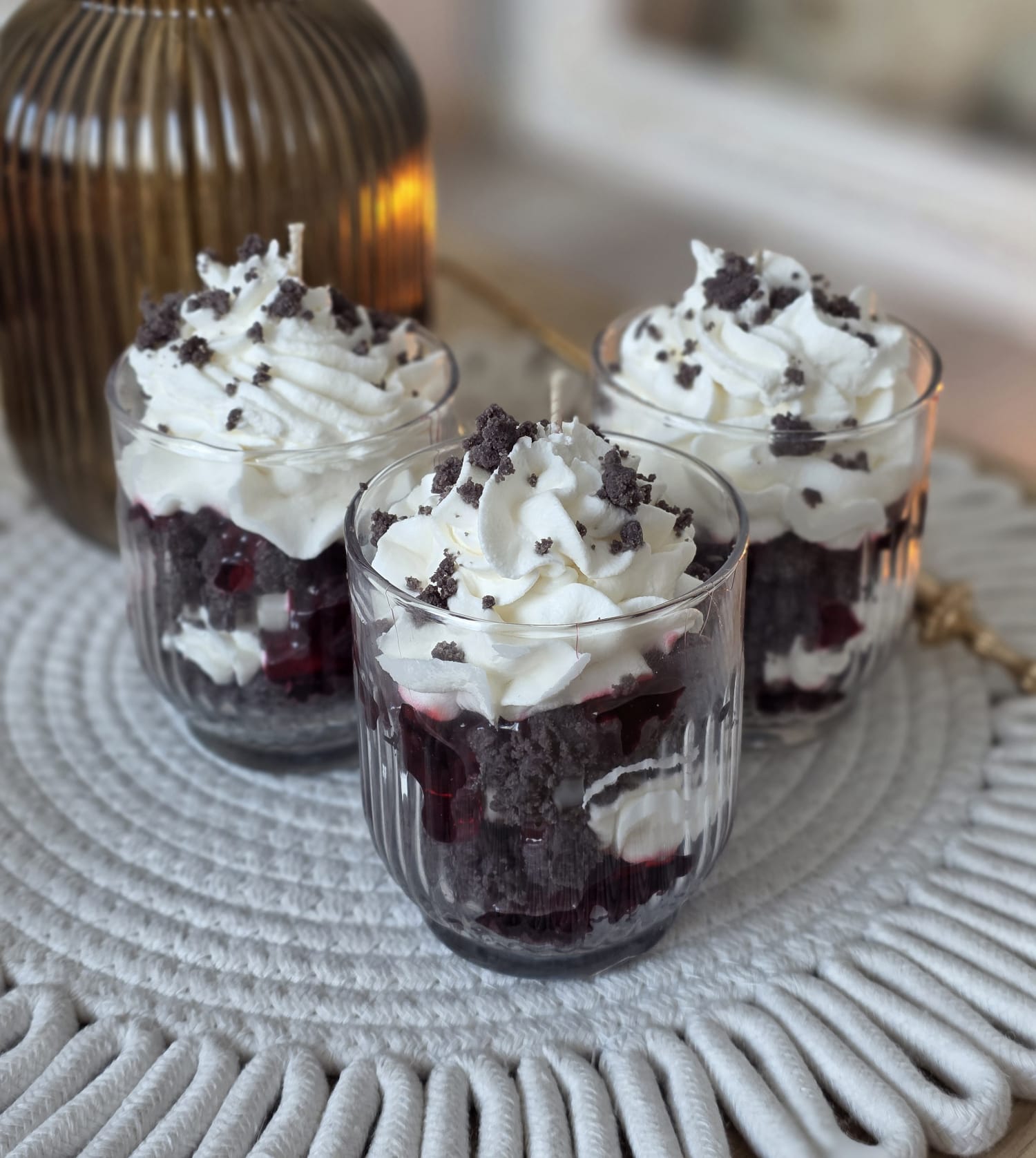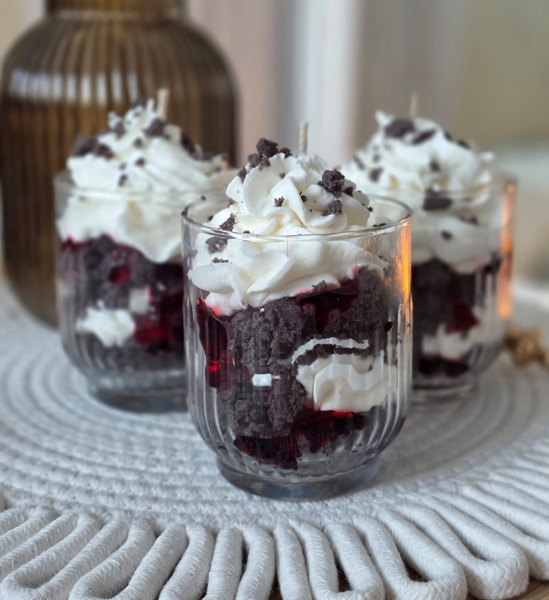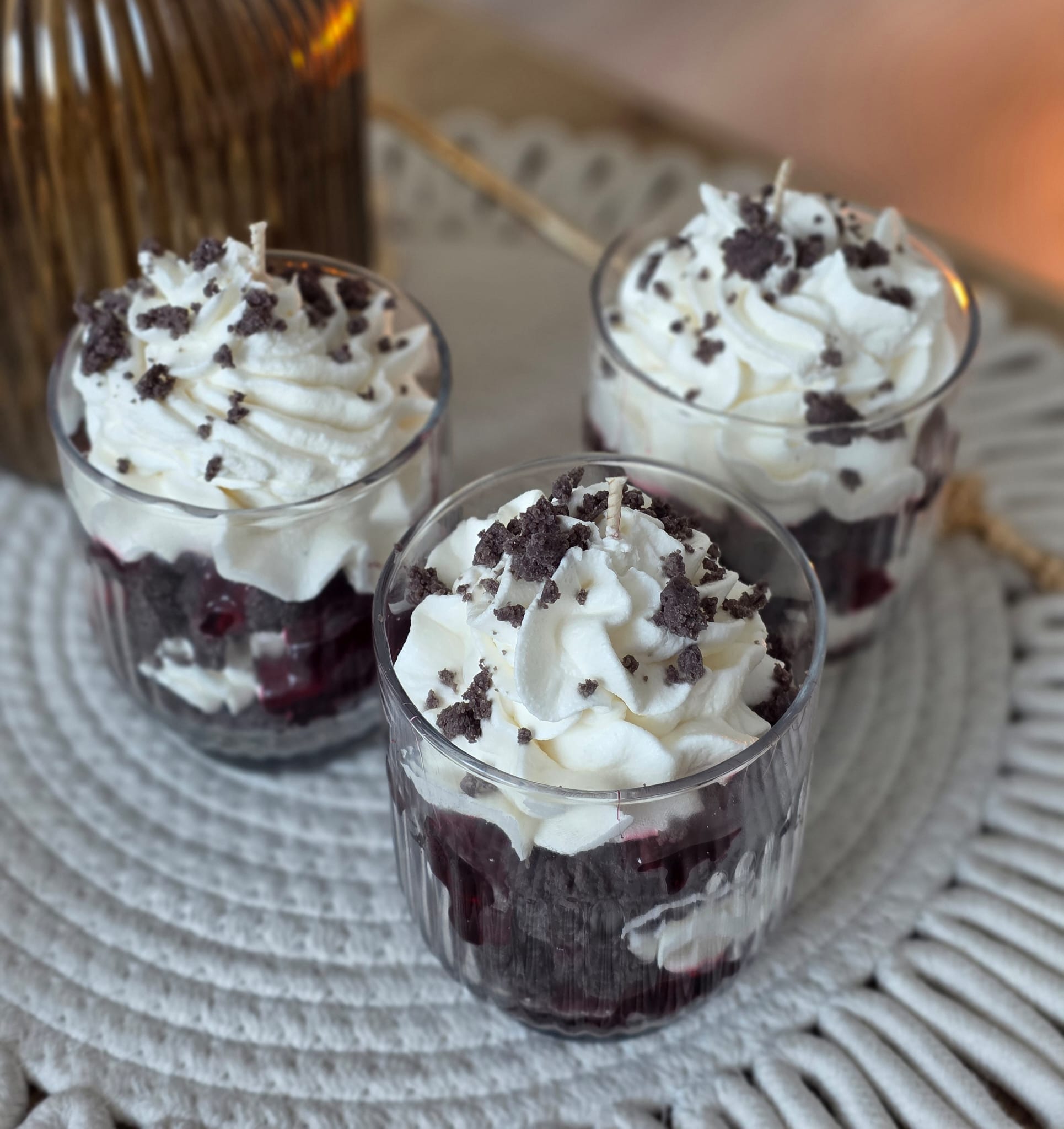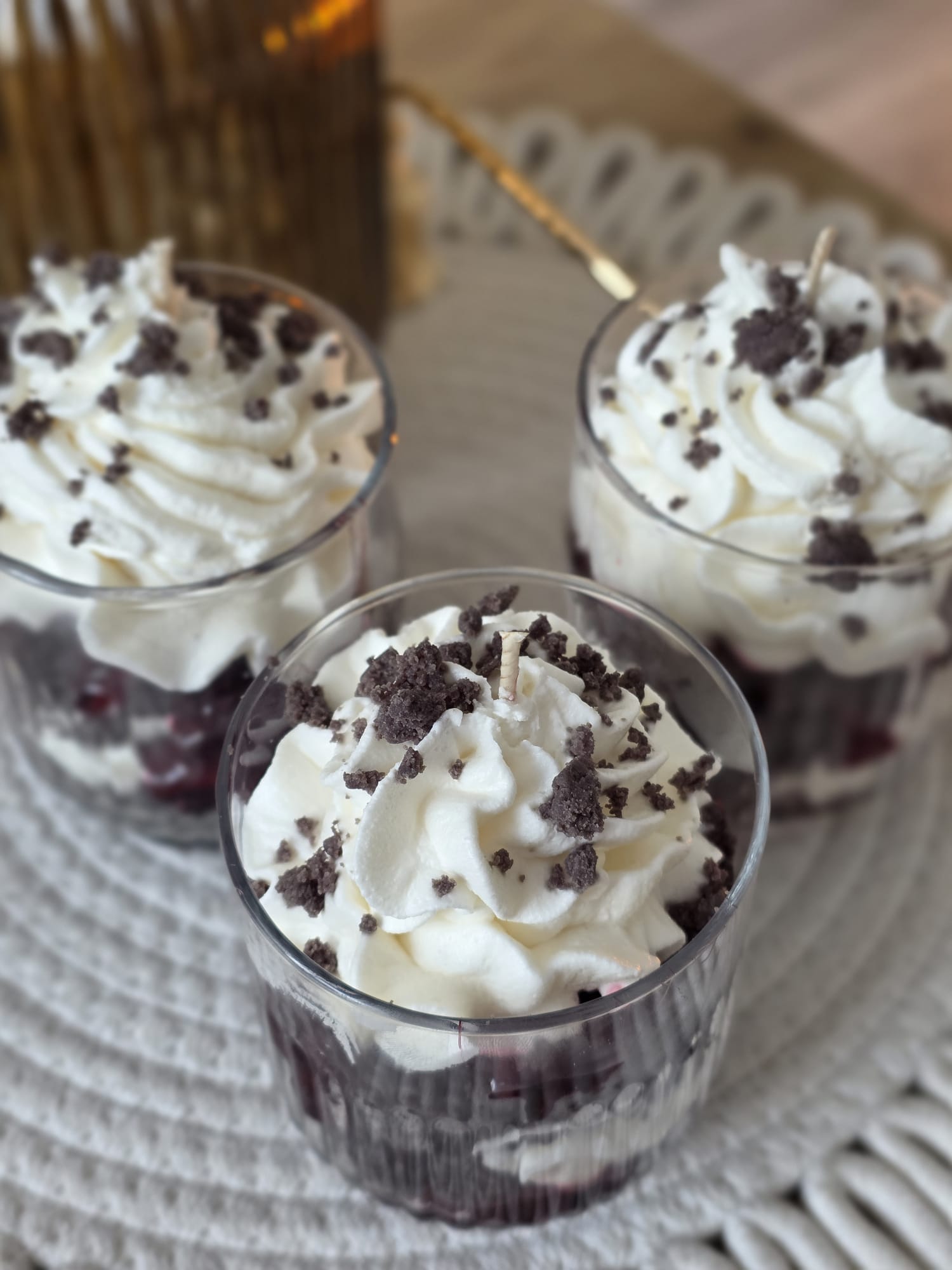Šī 200 ml svece vizuāli atgādina tradicionālo Latviešu nacionālo desertu – dziļi brūna “rupjmaize”, balts putukrējums un koša dzērveņu zapte sarkanā krāsā. Katrs slānis izskatās tik mājīgi un gardi, ka gribas to „nogaršot” ar acīm!