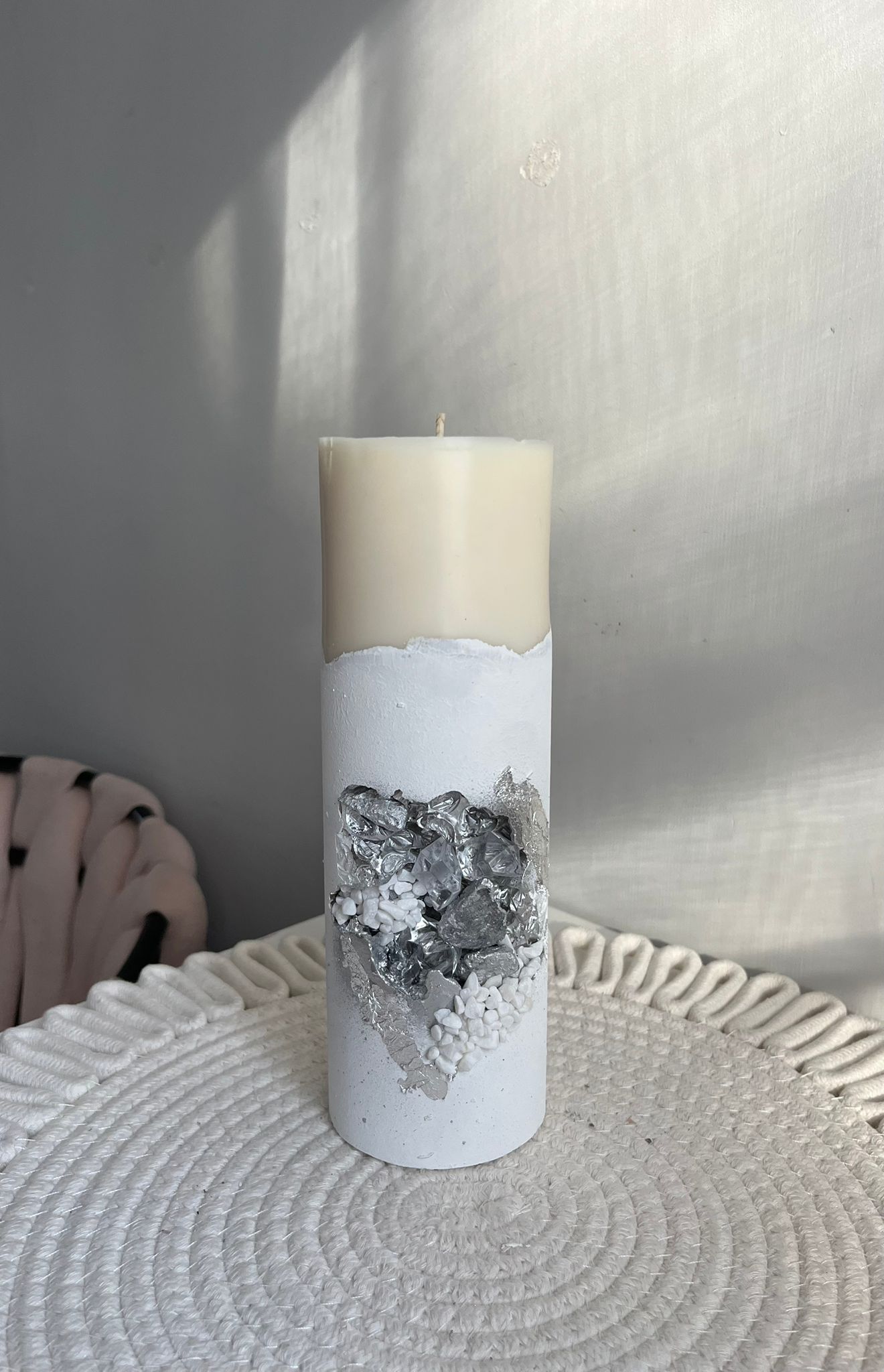 Sojas vaska svece! Sveces pamatne ir kā svečturis (paliekošs) vēlāk var likt virsū citas sveces!