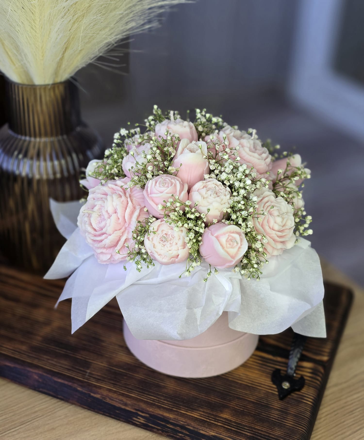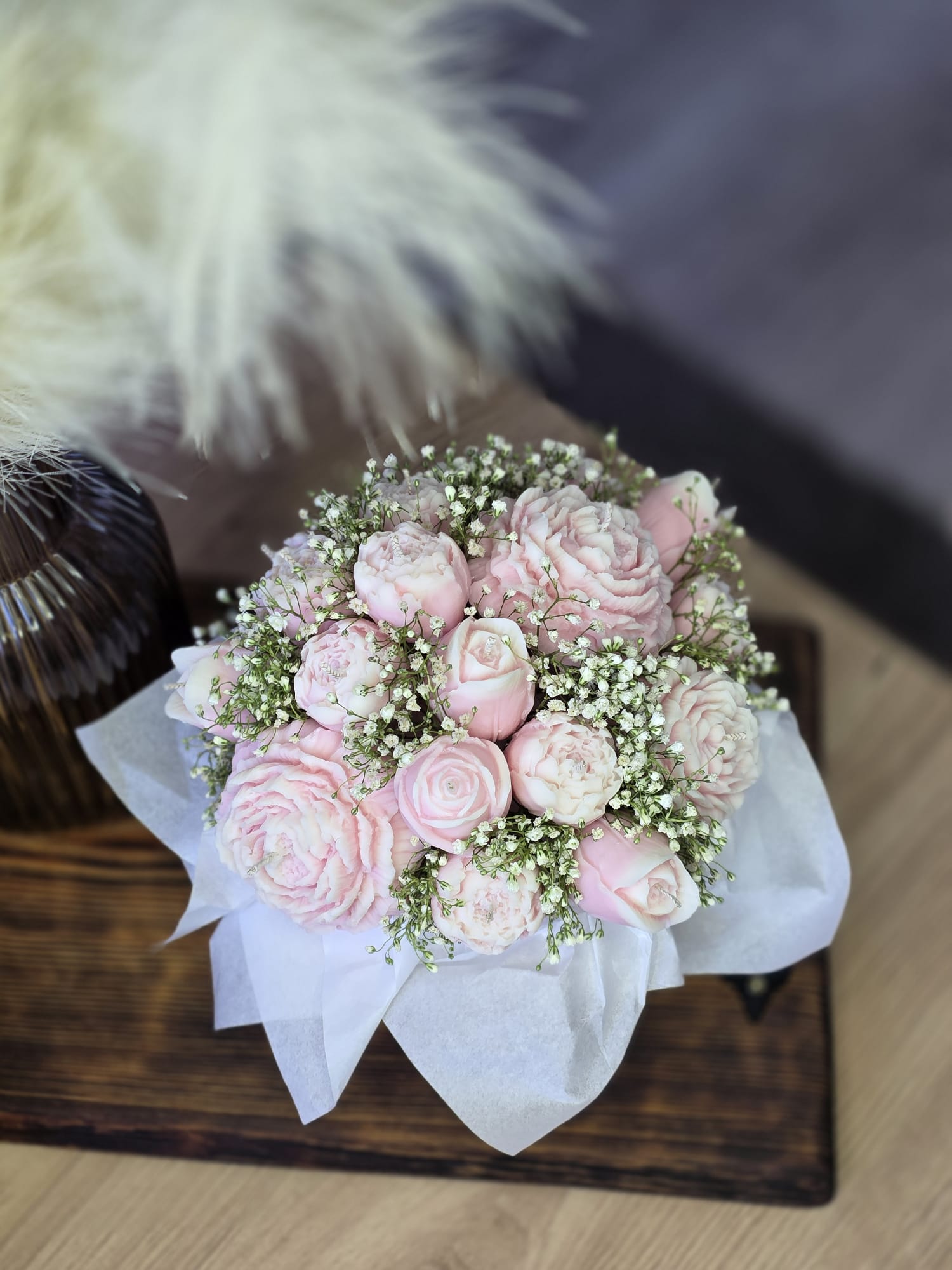 Sveču un dekoru noformējumā tiek izmantoti kaltēti ziedi (ģipsene un citi), kas paredzēti ilgstošai dekorēšanai, nevis kā dzīvi ziedi.