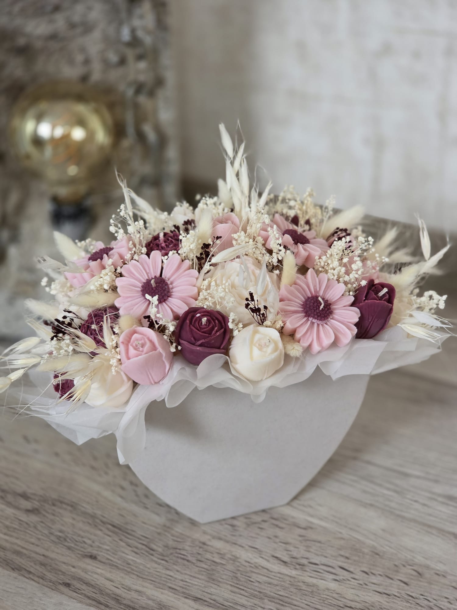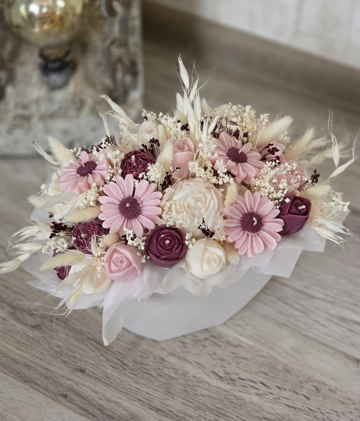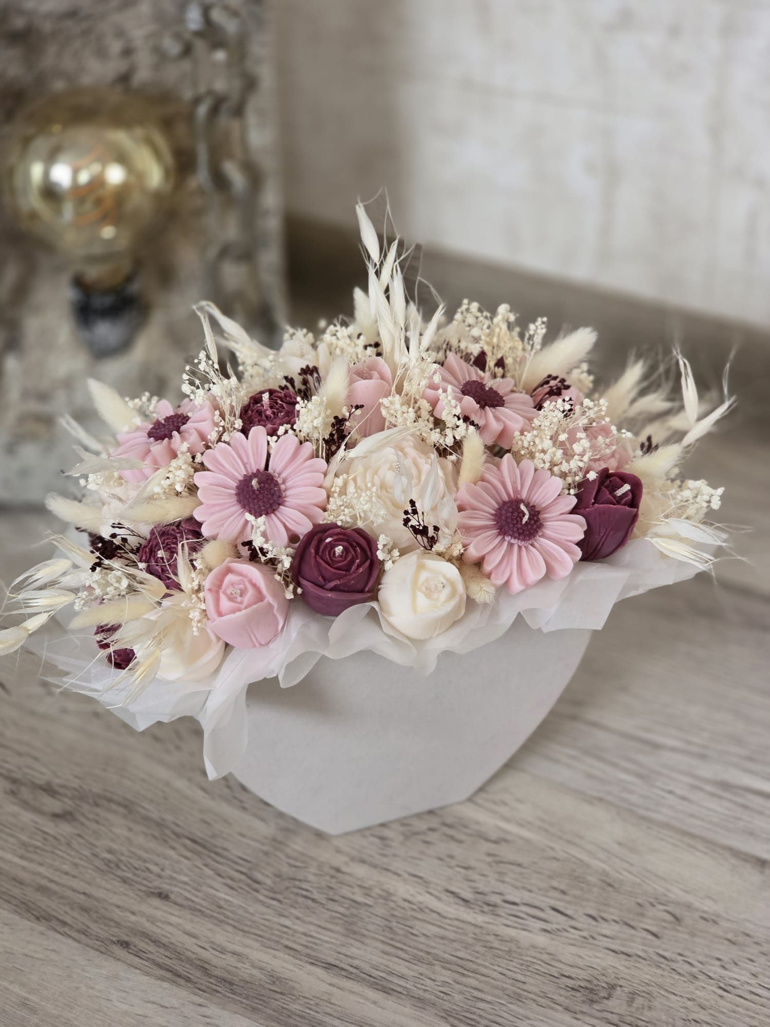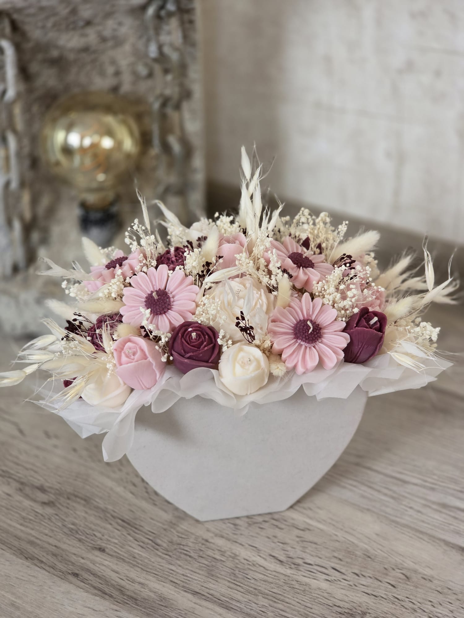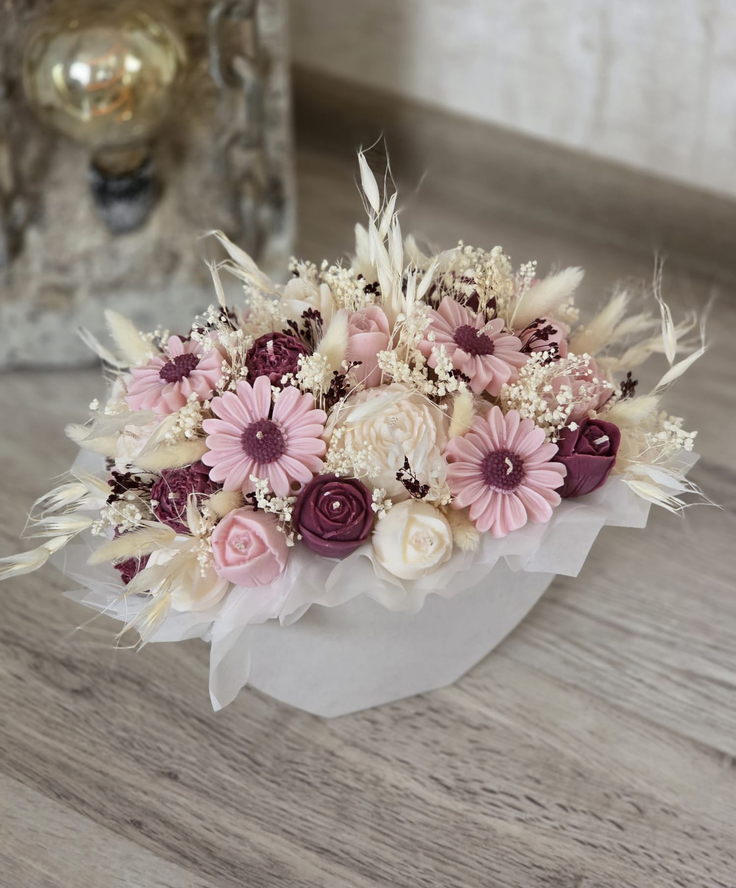 Sveču un dekoru noformējumā tiek izmantoti kaltēti ziedi (ģipsene un citi), kas paredzēti ilgstošai dekorēšanai, nevis kā dzīvi ziedi.