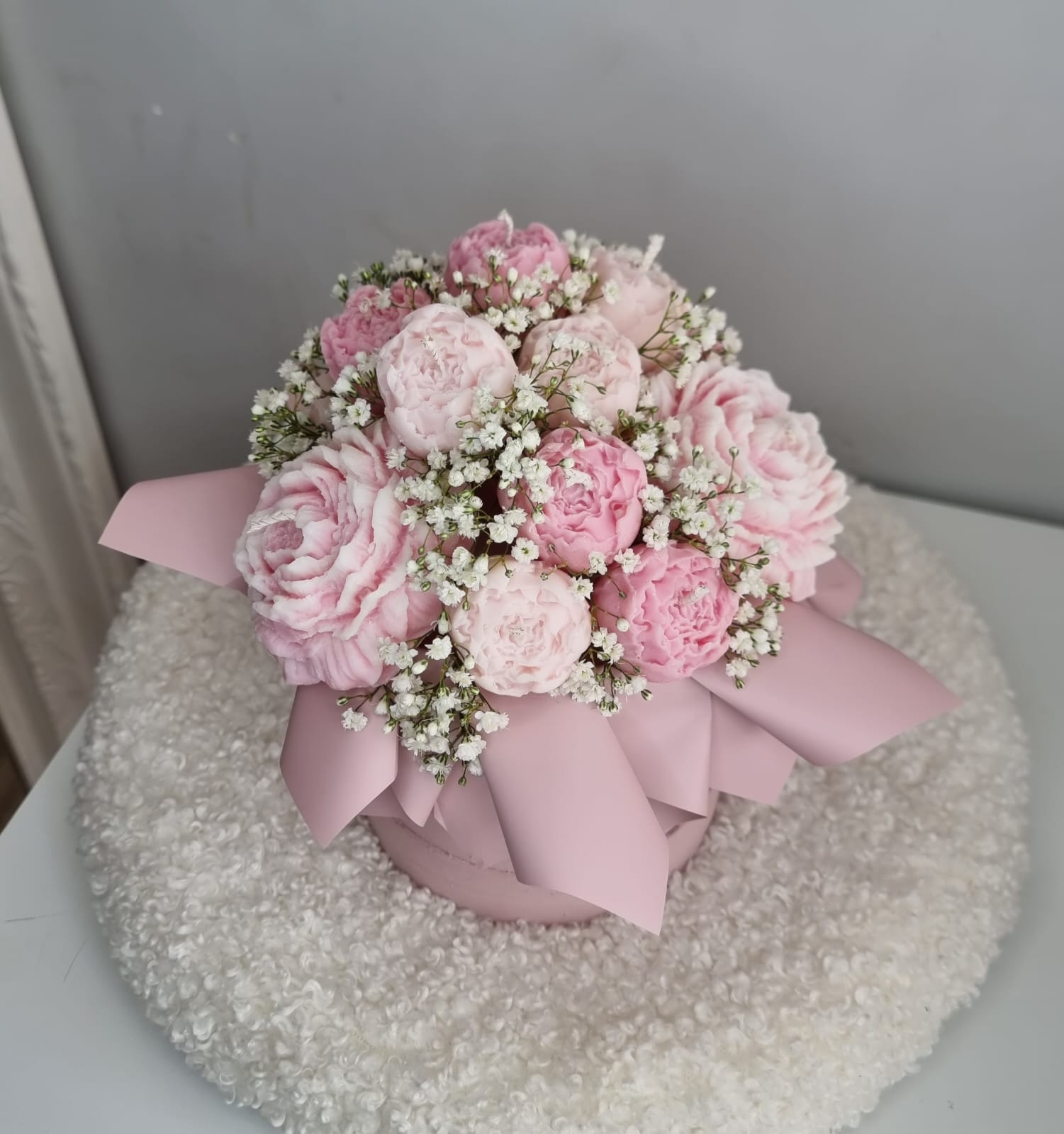 Sveču un dekoru noformējumā tiek izmantoti kaltēti ziedi (ģipsene un citi), kas paredzēti ilgstošai dekorēšanai, nevis kā dzīvi ziedi.